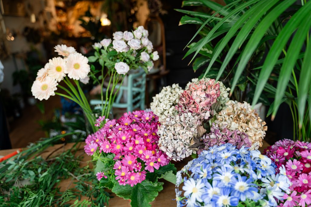 En nuestro jardín propio cultivamos de forma artesanal distintas variedades de flores según la estación del año; ranúnculos, anémonas, tulipánes, alliun, cosmos, zinias, amarantho…